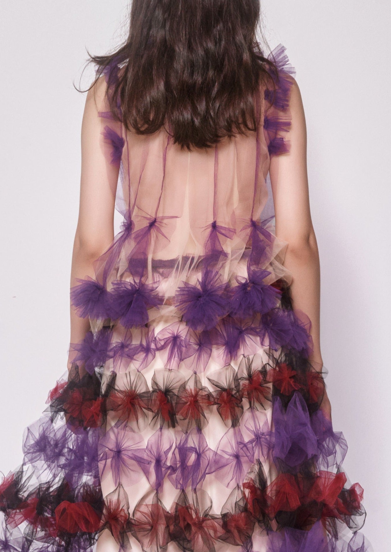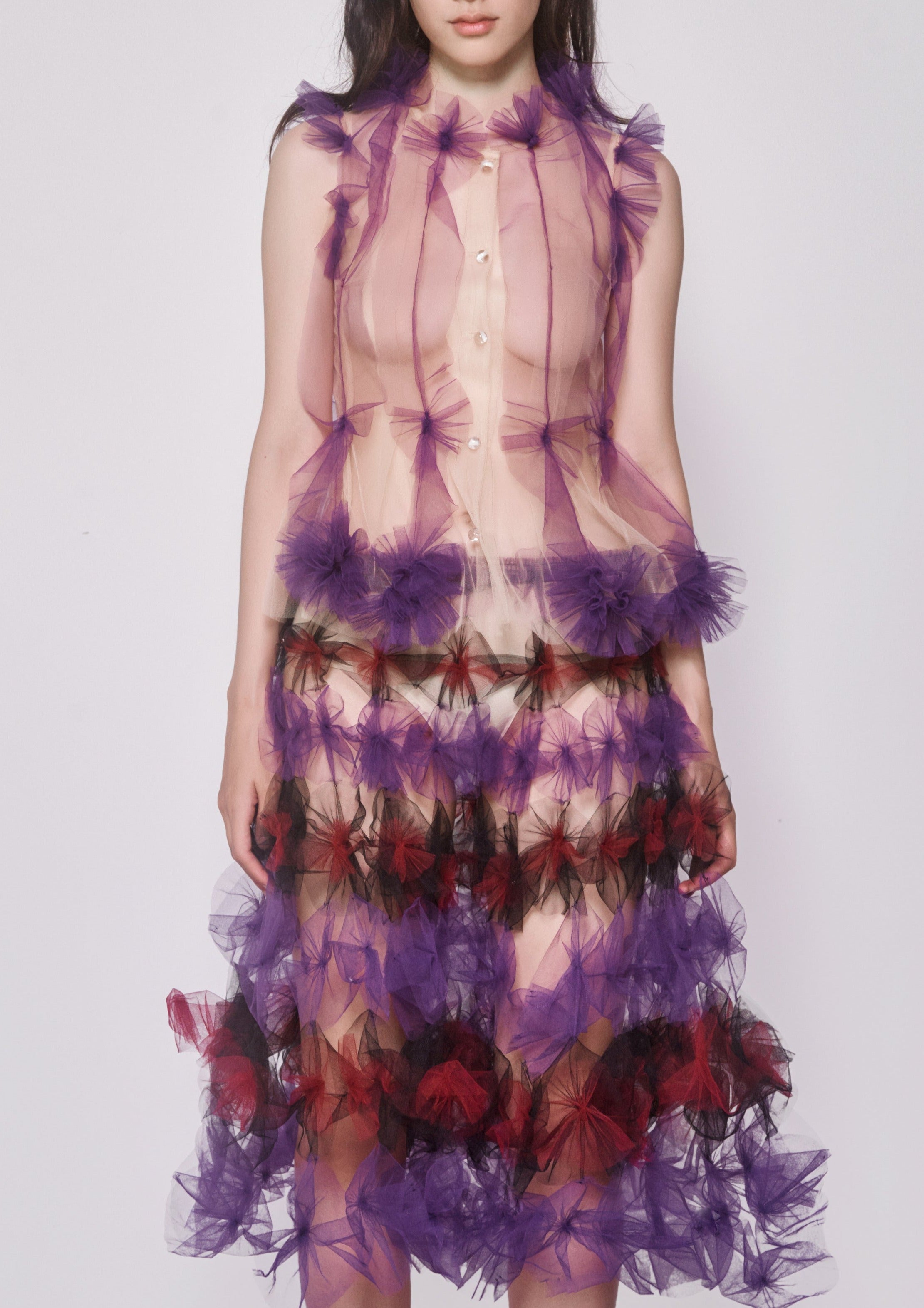 This top features details of our signature air flower, which are delicately displayed on top of a nude base.