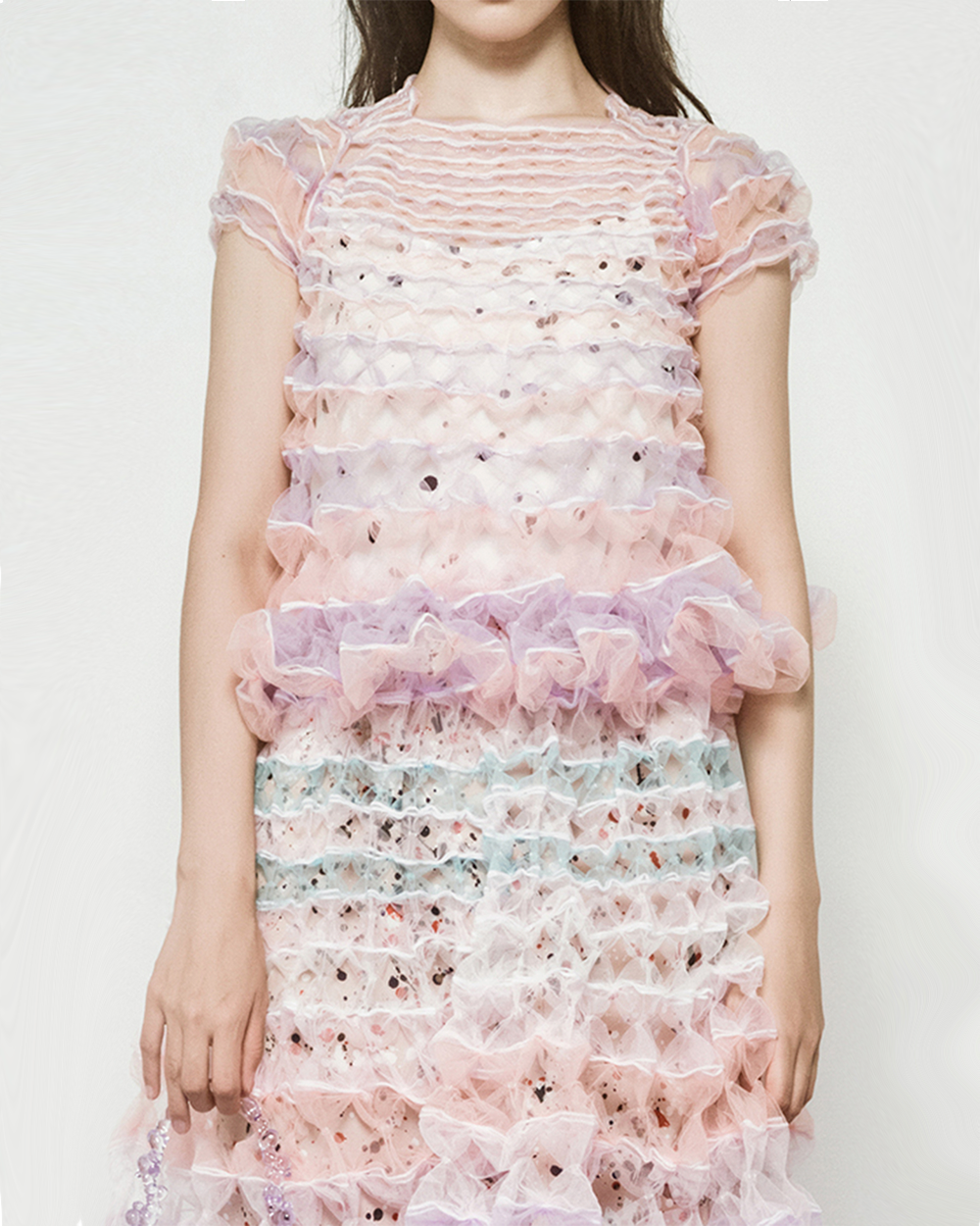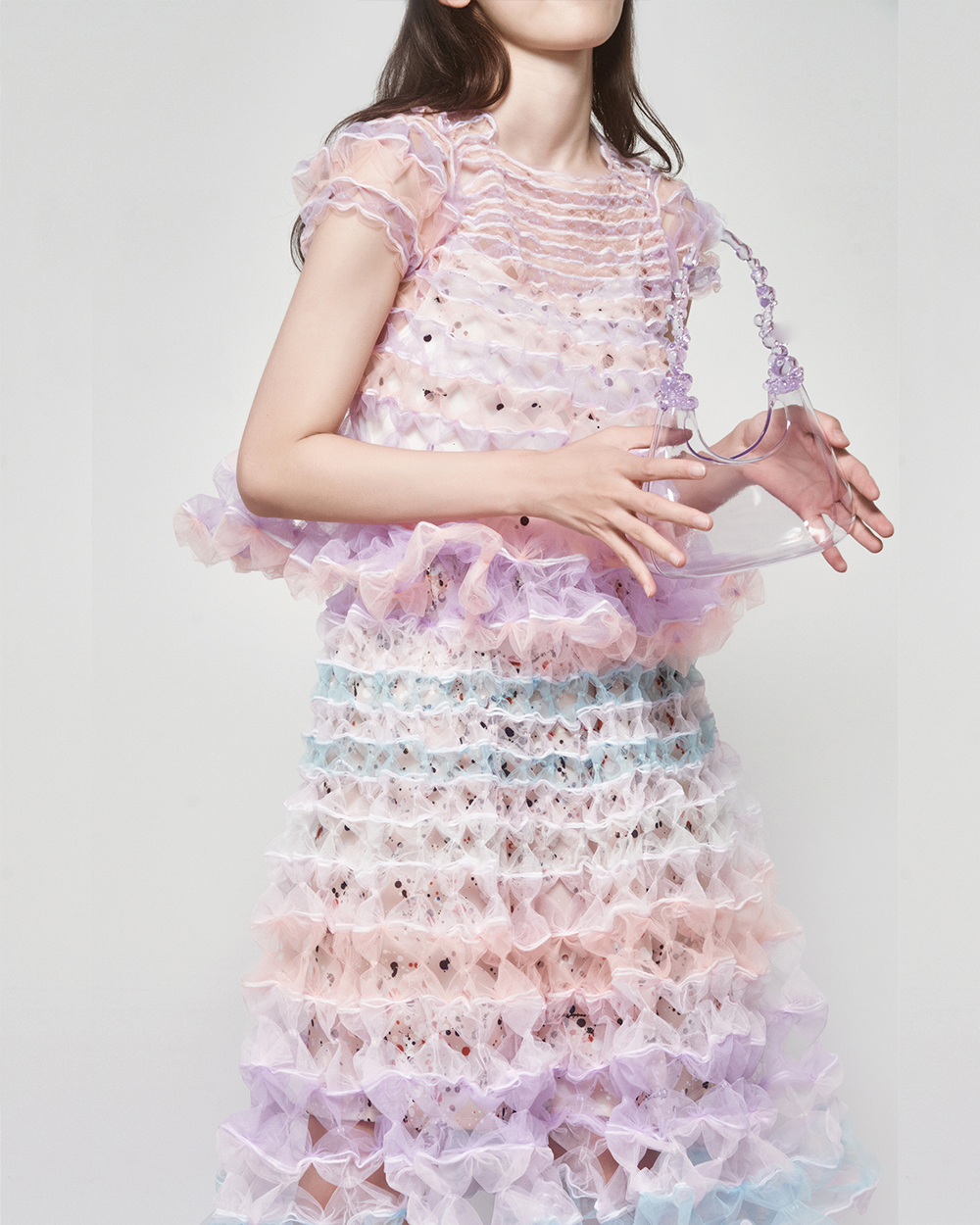 Air-Ribbon top is made from our special technique manipulated in coloured tulle.