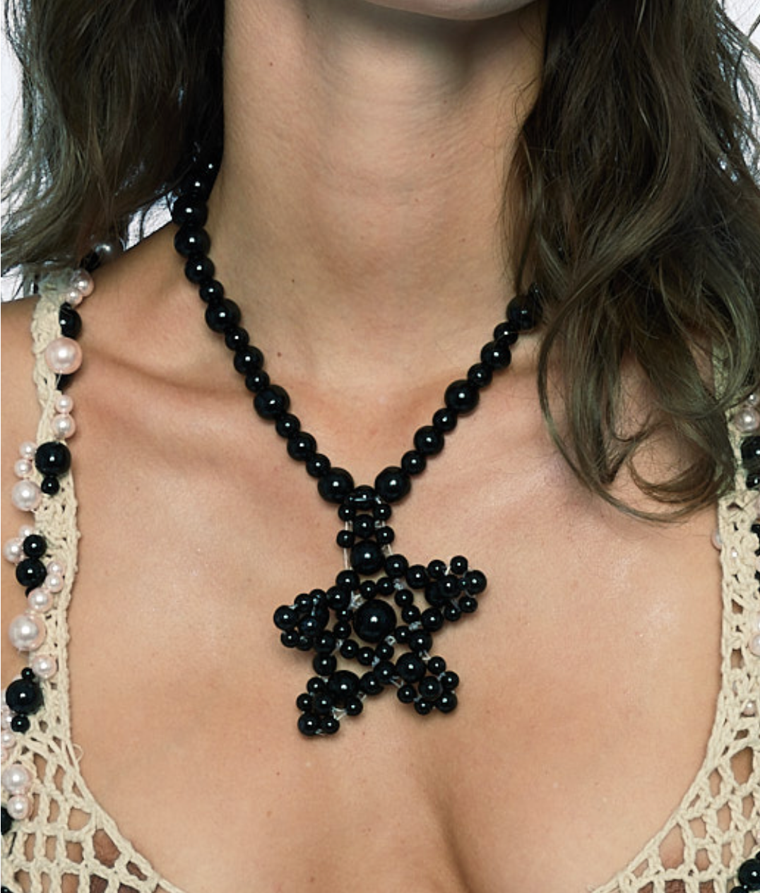 Introducing our SS24 BEADED STAR NECKLACE. The delicate red beads are hand-crafted into a stunning star shape, making this necklace a unique piece.