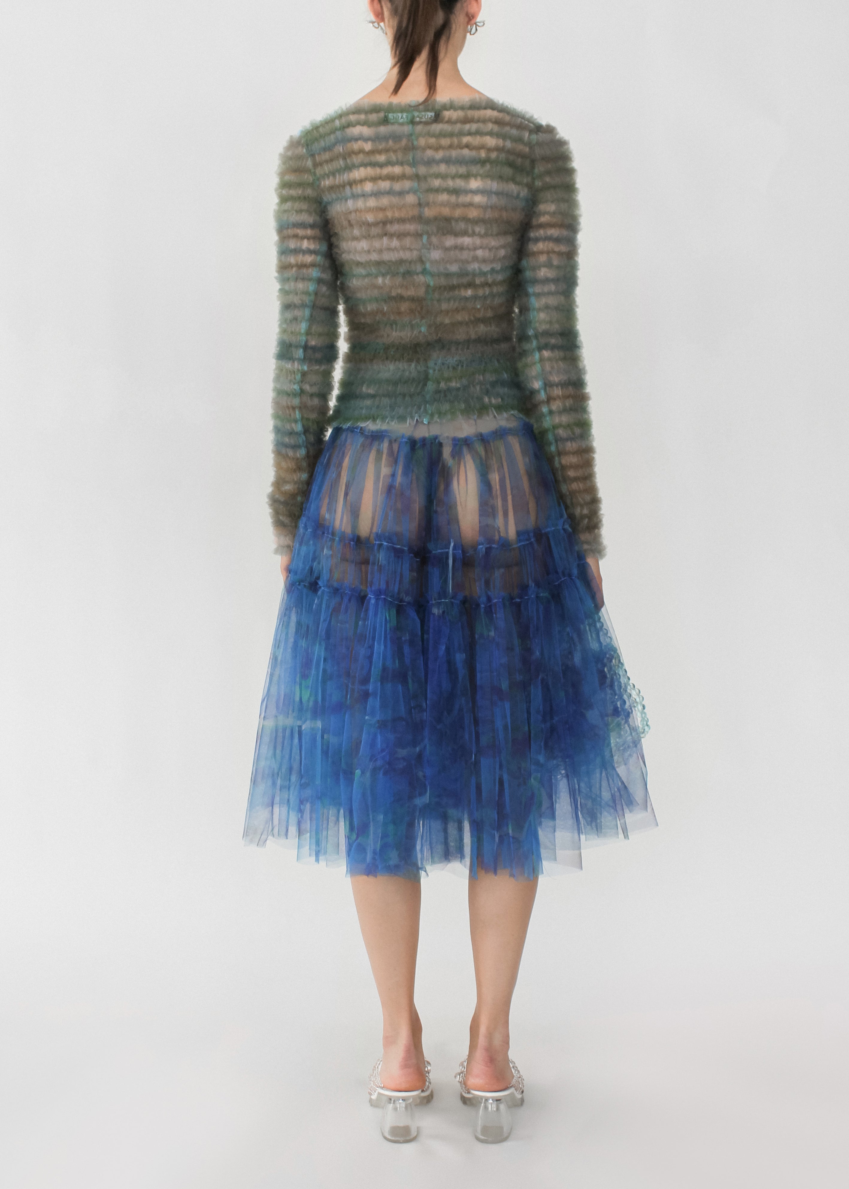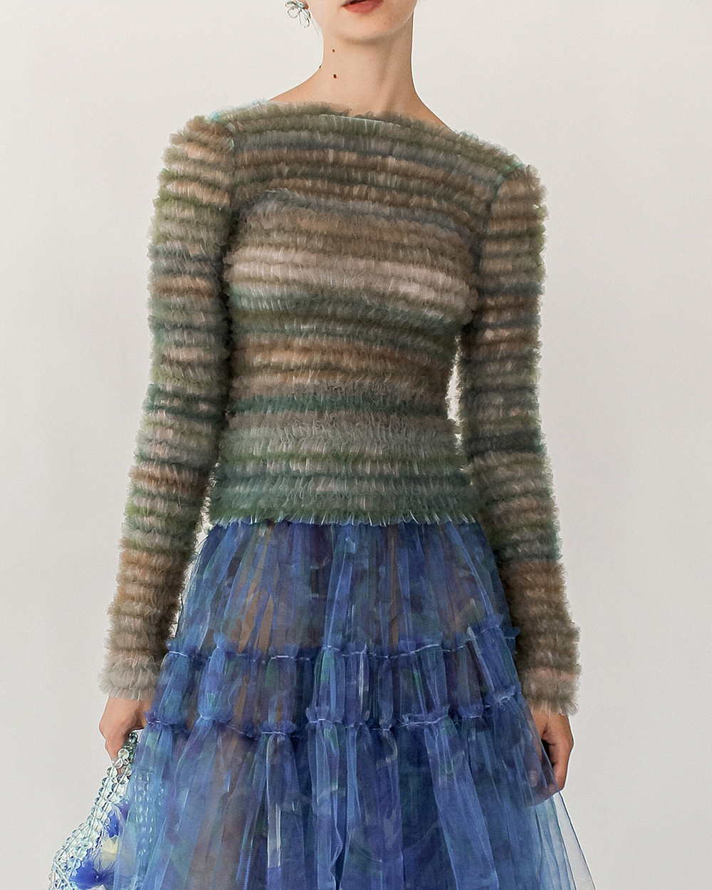 This blouse features frills and smock detailing all across the bodice and sleeves. It is also shirred along the bodice for a fitted yet flexible fitting
