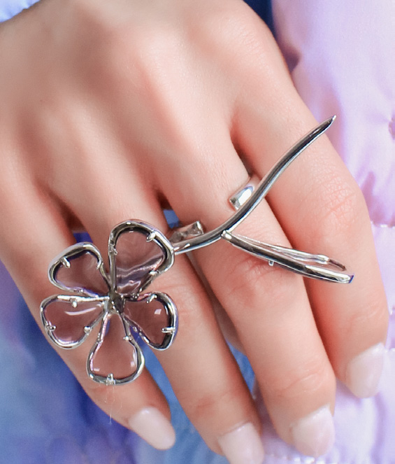 Our stain glass flower ring comes in the shape of flower and its stem spread across two rings to be worn as one.