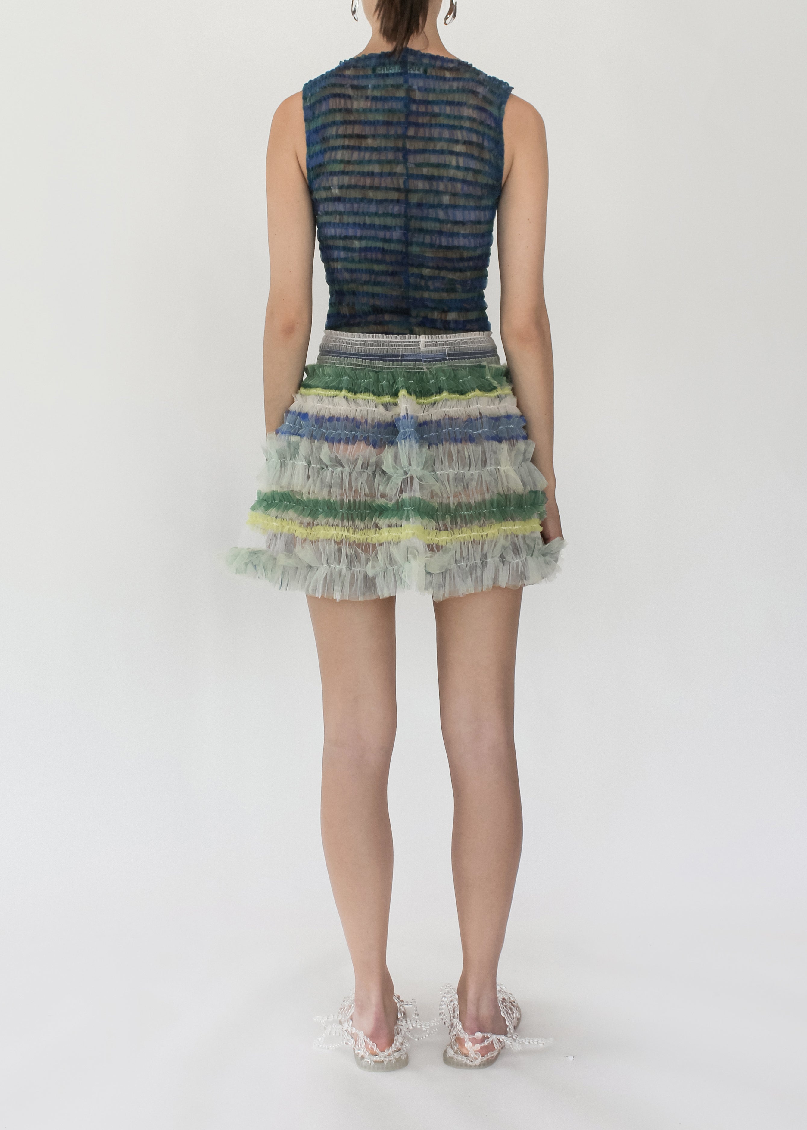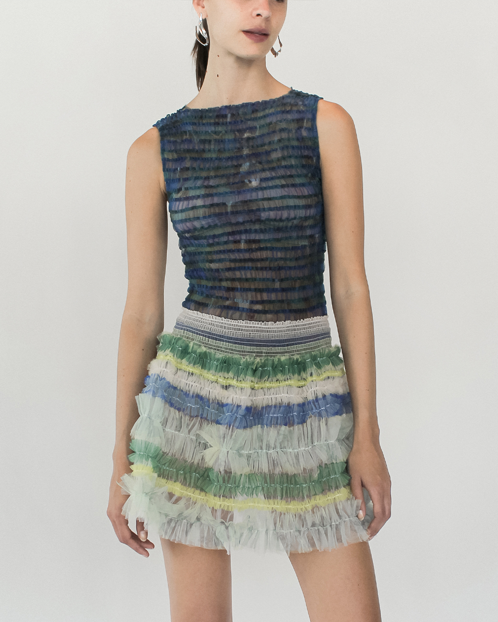 STRIPED SMOCKED SLEEVESLESS TOP
