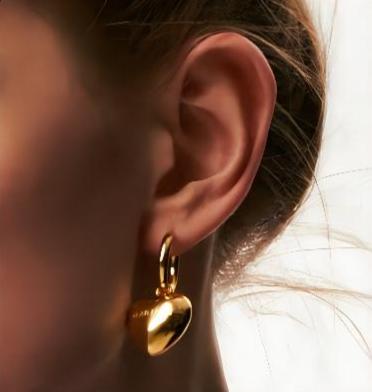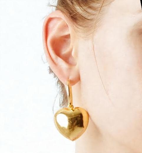 Our Susan heart earring is designed with our SUSAN FANG logo embossed on a heart shaped, gold plater earrings.