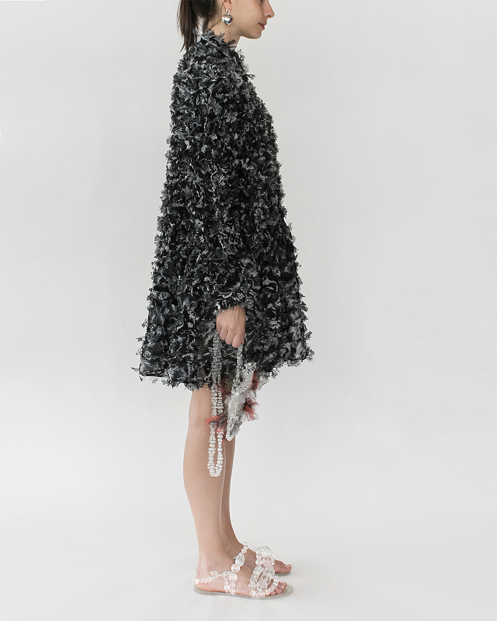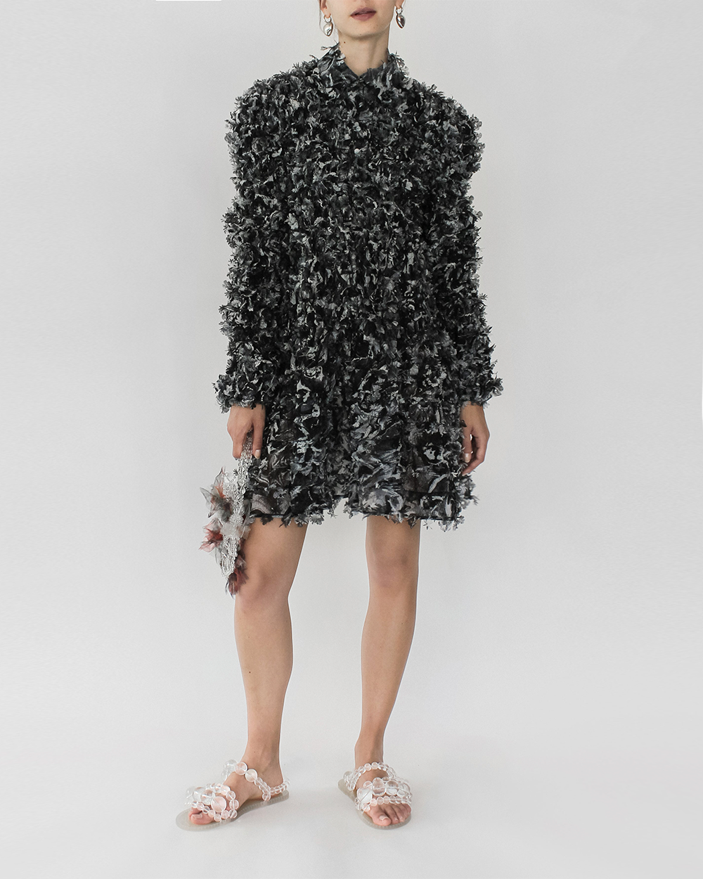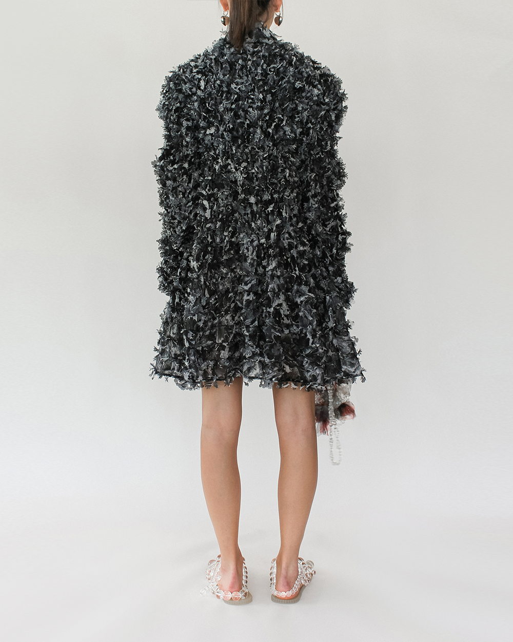 Along with with the printed fabric, this dress also incorporates laser cut technique to further enhance the textures and fun detailing on the dress.